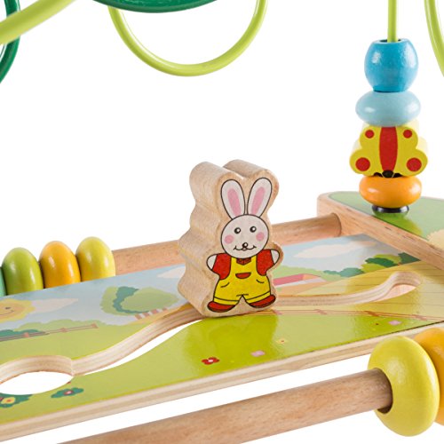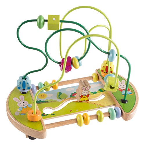 Studio : TMG Publisher : TMG Binding : Toy Product Description An imaginative way to reinforce hand-eye coordination for your baby or toddler is as simple as the carefully crafted and brightly painted Wooden Maze Puzzle Table Game by Hey! Play!. This educational and interactive toy features wooden beads over a twisted metal track, creating a game that helps encourage early motor skills. The two horizontal rods located at the front and back contain moving beads that also help develop dexterity, while the adorable bunny in the middle builds curiosity. This toy helps stimulate minds in babies as young as 12 months with a sturdy activity center that is sure to last throughout their toddler years! STURDY AND LONG-LASTING- This durable toy is made of quality wood, including real beech wood, to entertain your toddler for years to come. In addition, the metal curved maze is built to resist wear and tear, inspiring your child through years of play! SIMPLE AND FUN- A detachable bunny skates across the vibrantly painted board while 2 squiggly metal rods twist around with wooden beads to draw a toddler's attention. Also, the wooden rods at the bottom create more ways to amuse their curious minds. START BASIC SKILLS- As your child pushes the wooden beads across the wire maze, hand-eye coordination and building skills begin to develop. Also, the butterfly, square, and round shapes encourage early stages of color development and shape recognition! PROMOTES LEARNING- This classic wooden toy encourages a child's curiosity with a fun and engaging activity. With wheels on the bottom to scoot across the floor or table, this toy develops motor skills while sprouting imaginations- all in one clever toy! PRODUCT DETAILS- Includes 1 play activity center with 24 wooden beads, 1 wooden toy bunny, and 2 twisting wire rod mazes. Activity center measures: 10.75"x 6.25"x 9". Materials: MDF and beech wood. 0