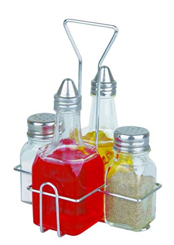 -. Binding : Kitchen -. Brand : Europe Ware -. Color : Clear -. EAN : 0765857504070 -. Feature : 5 Piece Set / Comes in gift box / Includes Chrome Stand / Includes Salt and Pepper Bottle / Includes Oil and Vinegar Bottle -. Label : Europe Ware -. Manufacturer : Europe Ware -. Model : JA 0302 -. MPN : JA 0302 -. PackageQuantity : 1 -. PartNumber : JA 0302 -. ProductGroup : Kitchen -. ProductTypeName : KITCHEN -. Publisher : Europe Ware -. Studio : Europe Ware -. Title : Europe Ware JA 0302 Oil Vinegar and Salt Pepper Cruet Set, Clear -. UPC : 765857504070