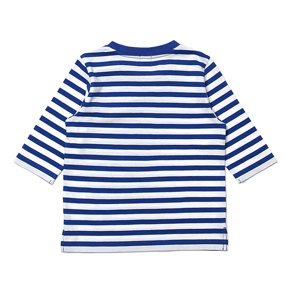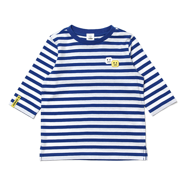 스트라이프티에 새로운 컬러감의 로비와펜장식을 달아,기본이지만 포인트가 되는 디자인의 스트라이프 7부티입니다.네크부분을 시보리립으로 처리하여 쉽게 늘어나지 않고 내구성이 좋으며,다양한 코디에 쉽게 연출하여 입기 좋습니다.