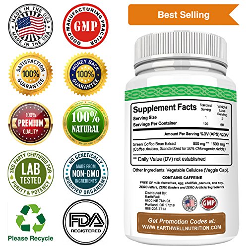 Formulated for optimum efficacy and quality guaranteed, Earthwell green coffee follows his guidelines, with over 50% chlorogenic acid. There is only a minimal amount of caffeine so no jittery or side effects at all. We only use natural ingredients coming from coffee beans. Thousands of people have already lost weight with our supplement, join them today.