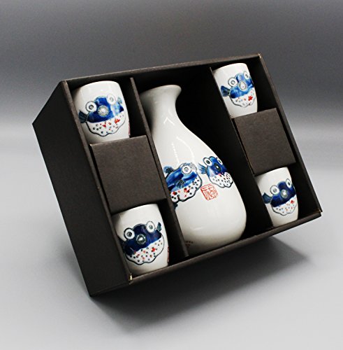 Japanese Ceramic Sake Set ~ 5 Piece Sake Set ( with 1 TOKKURI bottle and 4 OCHOKO cups) With Pu...