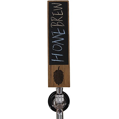 - This beer keg tap handle is engraved with hops and features a chalkboard section to write the current brew.