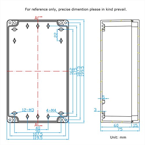 Pinfox Waterproof Electronic ABS Plastic Junction Project Box Enclosure 200mm by 120mm by 75mm (Black)