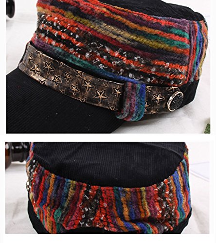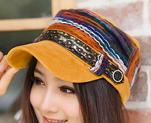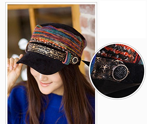 -. Feature : Circumference: 23 inches, Brim: 2.75 inches, Height: 3.75 inches / Colorful thread design with fancy star front belt / Can be used for many casual events, hang outs, outdoor activities, school, shopping and for other occasions / Design: Newsboy style hat with a belt accent and adjustable back / Stylish hat that is lined and will keep you warm during cold weather