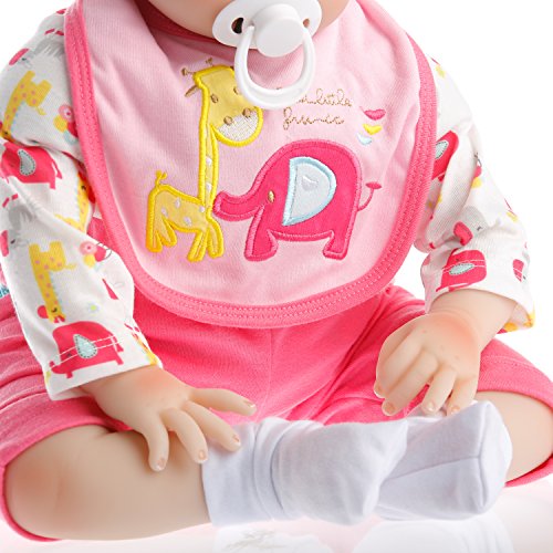 Baby Size:20-22inch (50-55)cm Weight:about 1.2-1.4KG(2.6-3.0LB).The doll is handmade,will be some error in the size and weight. Baby can fits into newborn size(0-3m) baby clothes. a magnetic pacifier can fit the mouth.