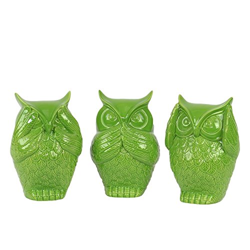 Urban Trends Ceramic Owl No Evil, Assortment of Three, Gloss Lime Green