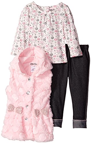 -. Title : Little Lass Baby Girls' 3 Piece Fur Vest Set Hooded Sequin Bow