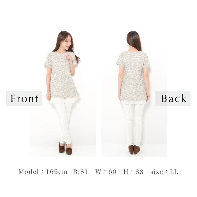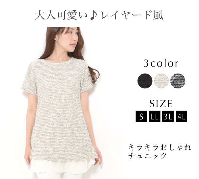 | 実寸 | [S] バスト82(72-80) 着丈71 袖丈17 肩幅33 [LL]バスト98(93-101) 着丈53 袖丈19 肩幅36 [3L]バスト106(100-108) 着丈73 袖丈19 肩幅39 [4L]バスト110(107-115) 着丈74 袖丈19 肩幅41 |