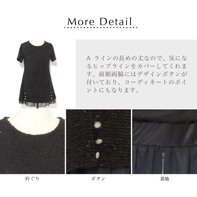 | 素材 | [黒] (表地)ポリエステル100% (裏地)ポリエステル100% (裾 別布部分)ポリエステル100% [オフ・紺] (表地)ポリエステル72% 綿27% ナイロン1% (裏地)ポリエステル100% (裾 別布部分)ポリエステル100% |