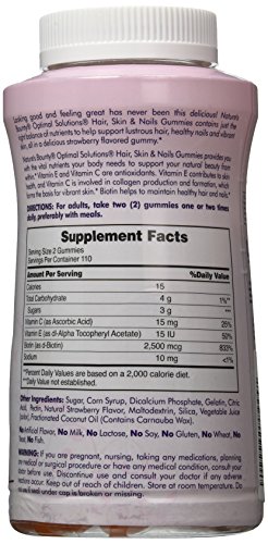 -. Title : Nature's Bounty Optimal Solutions Hair, Skin and Nails Gummies 220 Count With Biotin Strawberry Flavored