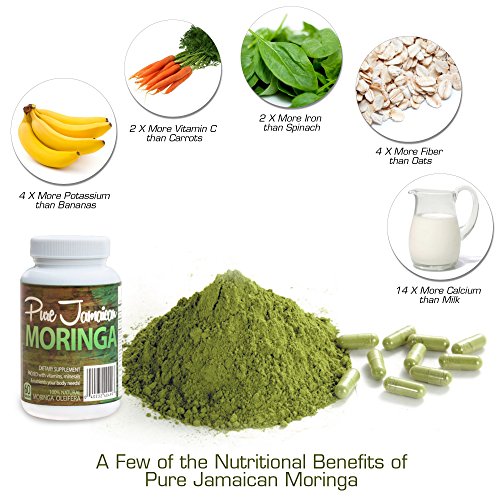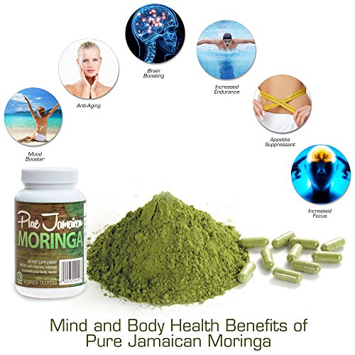 -. Binding : Health and Beauty -. Color : Dark Green -. EAN : 0040232404993 -. Feature : Moringa Oleifera, the Drumstick Tree, has been called the Miracle Tree and the Tree of Life because of the astounding amount of benefits packed into this plant, more than any other plant that Mother Nature has bestowed upon this earth. These include vast nutritional benefits, including anti-aging properties, energy boosting and mind sharpening abilities. It is also used by some as an aphrodisiac. / The Superfood of Superfoods: With over 90 essential nutritional compounds, the World Health Organization (WHO) uses this Superfood Cleansing Green as a low-cost health-enhancing food for third world countries where malnutrition and hunger are widespread. Its high protein content make it a great vegetarian supplement with a for vegetarians as well. / Moringa Powder, Organic Natural Healing: Antibiotic, anti-inflammatory, While Moringa has been proven to aid with many ailments, one should not rely on this product to treat any medical condition without consulting with your physician. Areas of benefit include lowering blood pressure and cholesterol and immune system support. / These Pure Jamaican Moringa Capsules are Natural Detox Cleanse Pills and Anti-Aging Supplement with Amino Acids. / Pure Jamaican Moringa is an Energy, Mood Booster and Appetite Suppressant Powder, which provides Sleep Cycle Improvement, Anxiety and Depression Relief, Mental Clarity, Memory and Focus Enhancer. With so many essential brain nutrients, including vitamin C, vitamin E, omega 3, and caratenoids, one of the many benefits of taking a daily regimen of Moringa is increased clarity and mental focus. -. IsAdultProduct : 0 -. Label : Pure Jamaican Moringa -. LegalDisclaimer : This product and these statements have not been evaluated by the Food and Drug Administration ( FDA ). This product is not intended to diagnose, treat, cure, or prevent any disease. -. Manufacturer : Pure Jamaican Moringa -. MPN : JAMAICANMORINGA24K -. PackageQuantity : 1 -. PartNumber : JAMAICANMORINGA24K -. ProductGroup : Health and Beauty -. ProductTypeName : HEALTH_PERSONAL_CARE -. Publisher : Pure Jamaican Moringa -. Studio : Pure Jamaican Moringa -. Title : Organic Moringa Oleifera Powder Capsules Superfood Supplement, Natural Detox, Energy Booster, Beauty, Mind and Body Health Enhancer - Pure Raw Vegan / Vegetarian Non-GMO 800mg One Month Supply -. UPC : 040232404993