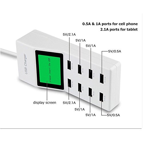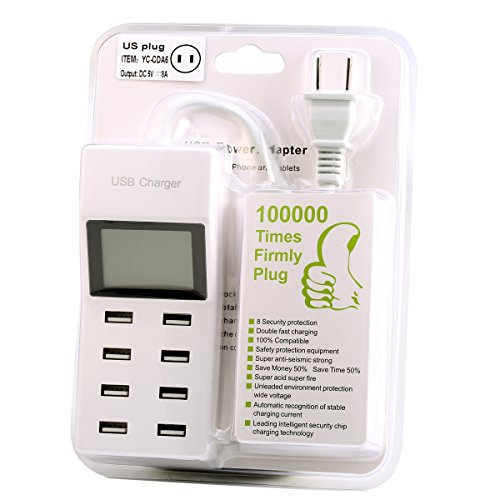 All-in-One Charging, Saving Lots of Your Time - 40 Watt Through 8 ports (Two 5V/2.1A , Four 5V/1A and Two 5V/0.5A, Total Max Output of 5V/9.2A) Lets You Charge All Your Smart Phones, Tablets or Other Devices Simultaneously.