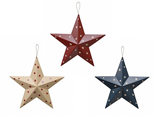 Attraction Design Americana Patriotic Barn Metal 3D Stars Wall Decor (Set of 3), Blue/Red/Beige