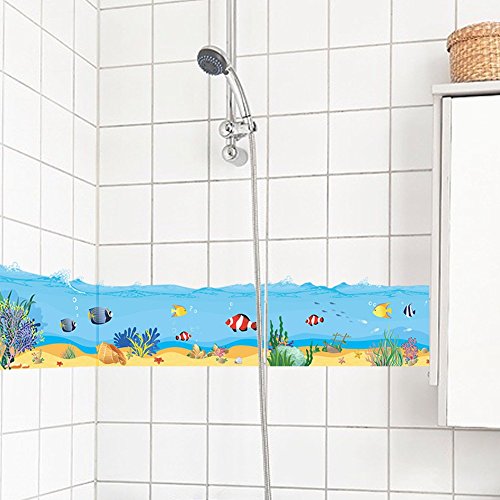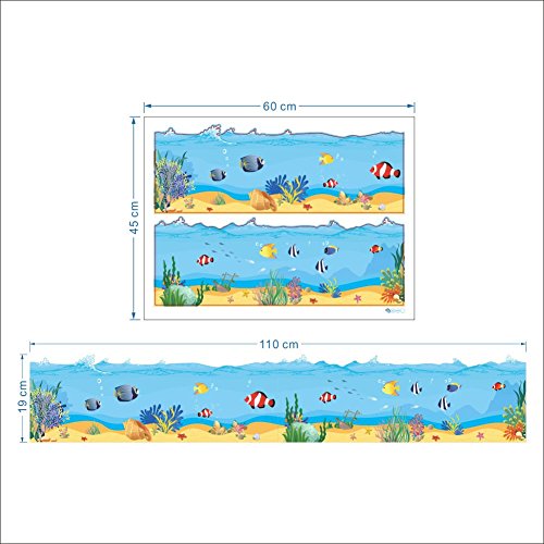 Amaonm® Under the Sea Colorful Fish Coral Green Grass Wall Decals Removable DIY art Decor Peel Stick Wall Stickers for Bathroom Toilets Kitchen Waistline Wall Corner Girls Bedroom