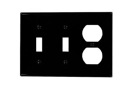 Leviton 80721-E 3-Gang 2-Toggle 1-Duplex Device Combination Wallplate, Standard Size, Black