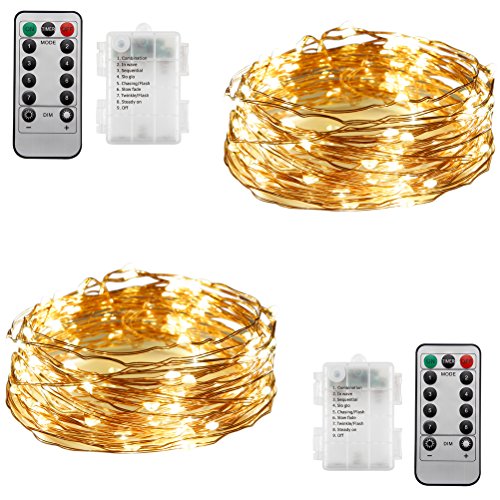 LED Fairy String Lights Waterproof 100 LED String Lights with Remote Control for Indoor and Outdoor - 33 Feet Copper Wire - for Bedroom, Patio, Garden, Gate, Yard, Parties, Wedding