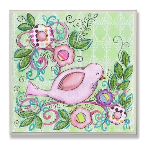 The Kids Room by Stupell Pink Bird Facing Right on a Floral Branch Square Wall Plaque