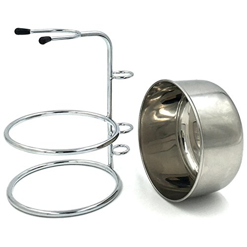 - Universal Concise style stand with shaving brush, consist with a excellent Stainless steel SUS420 bowl. And there is a razor holder on stand.
