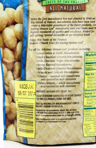 HEALTHY ALTERNATIVE: A great way to keep your hunger and your mouth satisfied, the Mauna Loa macadamia nuts deliver natural decadence. Healthy isn't a goal, it's a way of living.