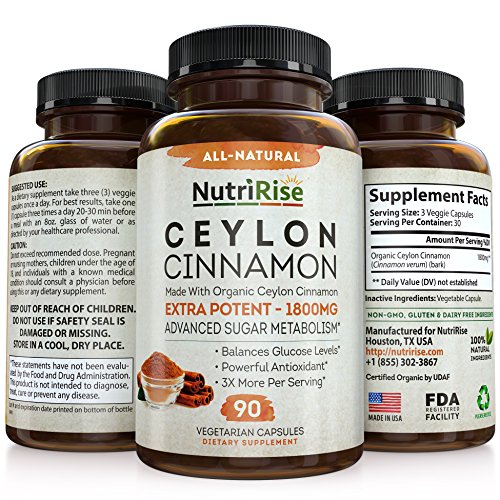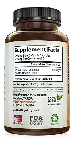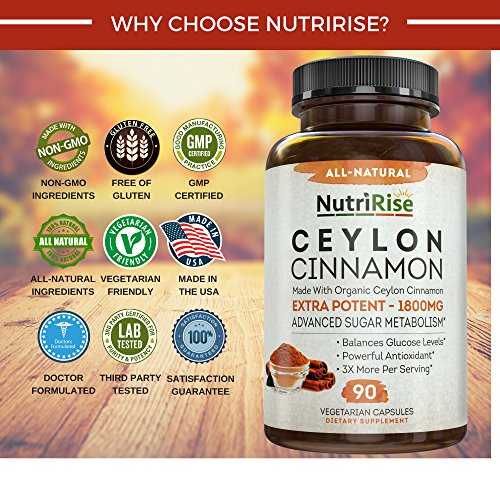 Studio : NutriRise Publisher : NutriRise Binding : Health and Beauty Product Description WHY CHOOSE NUTRIRISE CEYLON CINNAMON SUPPLEMENT? 100% SATISFACTION GUARANTEED: Feel healthier, stronger and fitter with our all-natural Ceylon Cinnamon capsules or your money back - no questions asked! HIGHEST POTENCY AVAILABLE 1800MG: While other Cinnamon supplements in the market only offer 1200mg of cinnamon extract per serving, our Ceylon Cinnamon supplement is made with 1800MG of Organic Ceylon Cinnamon powder per serving for powerful antioxidant anti-inflammatory benefits. MADE WITH CERTIFIED ORGANIC CEYLON CINNAMON: In order to ensure it is an organic cinnamon supplement, always check the nutrition panel to ensure it is made with certified organic cinnamon powder. Our 100% Pure Cinnamon is Certified by UDAF. 100% PURE CEYLON CINNAMON (TRUE CINNAMON) - HIGHEST QUALITY: While other cinnamon pills in the market contain Cassia Cinnamon (much cheaper to source, potentially toxic in higher quantities), our Cinnamon capsules (made with organic cinnamon capsules) contain Premium Ceylon Cinnamon (True Cinnamon) - clinically proven to have superior health benefits. SUPERIOR HEALTH BENEFITS: Our Pure Ceylon Supplement offers the highest health benefits including blood sugar management, joint support and reduces inflammation. In addition, it always curbs cravings, and promotes fat burn and weight loss. NO BINDERS - NO FILLERS - NO ARTIFICIAL INGREDIENTS: Our Cinnamon supplement is FREE of binders, fillers, artificial ingredients, magnesium stearate, gelatin, animal-byproducts and other harmful additives. GLUTEN-FREE - DAIRY-FREE - SOY-FREE - VEGAN-FRIENDLY: Our Pure Cinnamon Capsules are Gluten-Free, Dairy-Free, Soy-Free and FREE of allergens. GMP CERTIFIED - THIRD-PARTY TESTED - ENCAPSULATED IN USA: Extracted from pure cinnamon bark, our Ceylon Cinnamon capsules are proudly encapsulated in USA, third-party tested and GMP Certified. 0