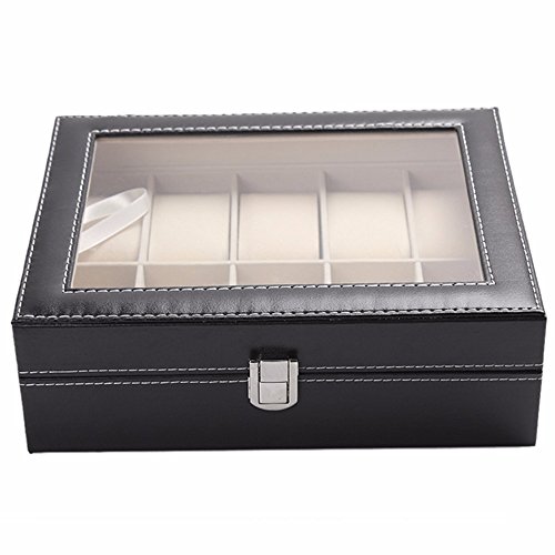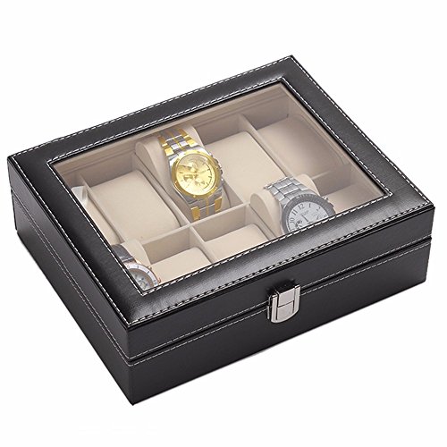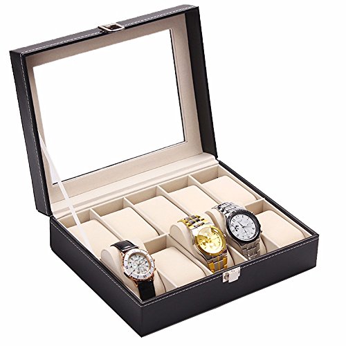 Soaptree PU Leather Watch Box Organizer Display Storage Case for Men & Women (10 slots)