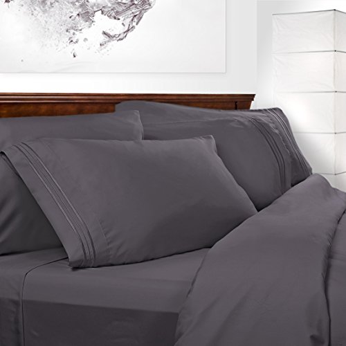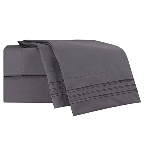 Luxurious Soft 100% Egyptian Comfort 3 Lines Sheet Set 1800 Series with Deep Pocket Sheet for Mattresses 4pc Set King Grey