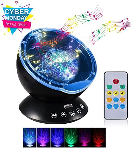 Night Lights,Newest Generation Remote Control Ocean Wave Projector with Built-in Music Player,12 LEDs & 7 Color Changing Modes Constellation Night Light for Living Room and Bedroom(Black) (Upgrade)