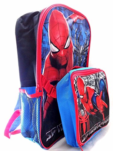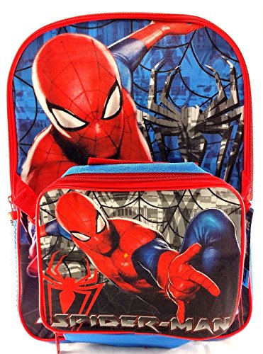 Marvel Spider-man 16" Canvas Blue & Red School Backpack w/Detachable Lunch Bag