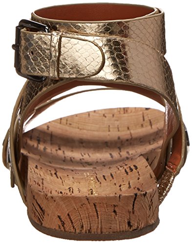 Textured gladiator sandal with cork midsole and metallic hexagonal studs