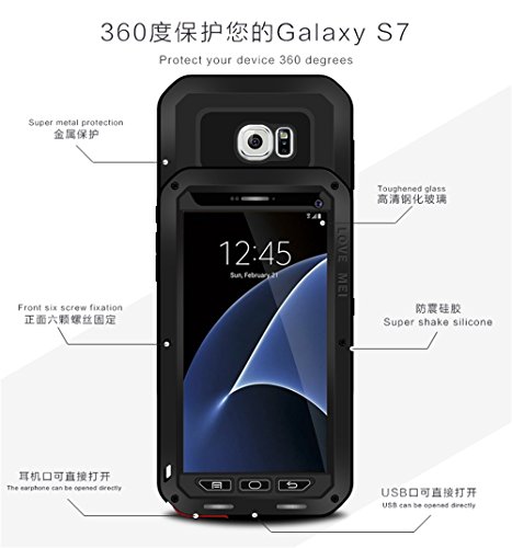 -. Feature : Precise cutouts for Samsung Galaxy S7(2016 Release); 9mm patent-penting impact truss,perfect design, protect your device is not subject to any damage / Keep your Samsung Galaxy S7 safe with the ultimate in aluminum protection. Stylish and sleekly designed aluminum bumper. / Dirt Proof: corning gorilla glass for screen protection for seamless touchscreen protection,high impact ballistic bezels with low profile pocketable construction. totally sealed from dirt and dust. / Starage Specifically design Protects the core openings of the phone, including volume controls, power button, and headphone jack. / NOTE: Slight Waterproof, Can Simple Protect Your Mobile Phone From the Rain or the Sudden Water Damage, It Can Face Water Resistant and Rain Proof, But not Put in Water, Swimming, diving, Surfing