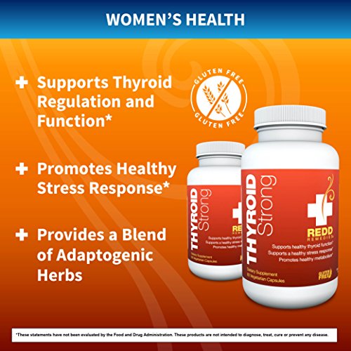 Award-winning Thyroid Strong is a blend of adaptogen herbs, minerals and other nutrients that provide a comprehensive answer to supporting healthy thyroid regulation and function. Some key ingredients of Thyroid Strong are zinc, copper, selenium, kelp, l-tyrosine and a Redd Remedies' Thyroid Nourishing blend.