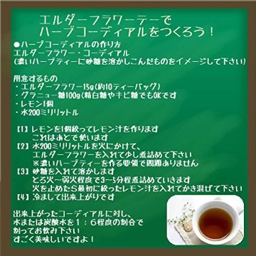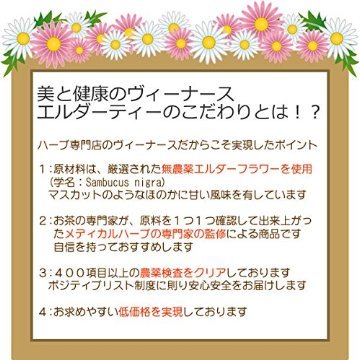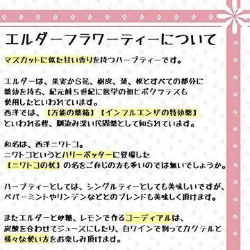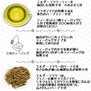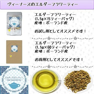-. Feature : Pesticide-free Elder Flower 100% of herbal tea / Contents: 1.5gX60 tea bag / More than 400 types of pesticides tested (pestici / The commodity experts herbal therapist supervisio / Since the non-caffeine you can drink anyone willi