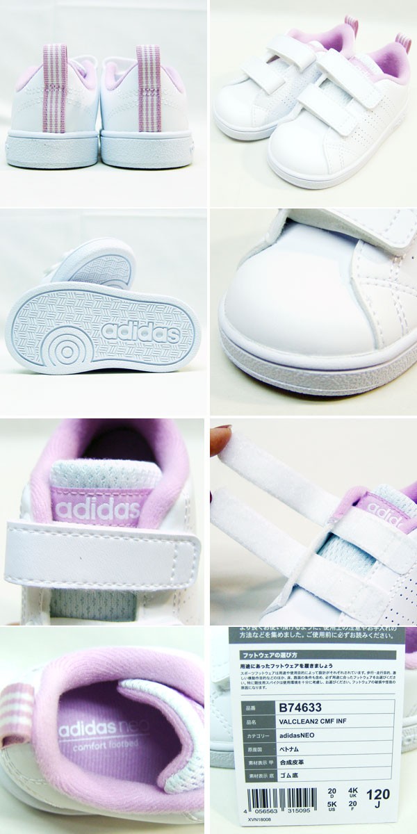 コメント:ベルクロで脱ぎ履きが楽々のキッズ向けのVALCLEAN2 CMF INF【バルクリーン2 CMF INF】は、シンセティックレザーのアッパーにadidasロゴを控えめにあしらい、クリーンでスタイリッシュな見た目に仕上げている。adidas neo のスニーカー。