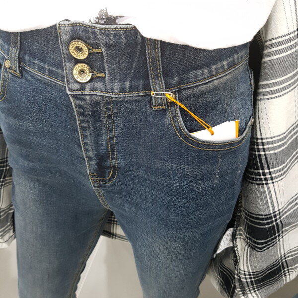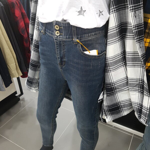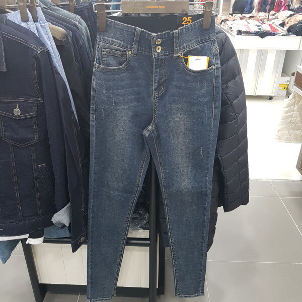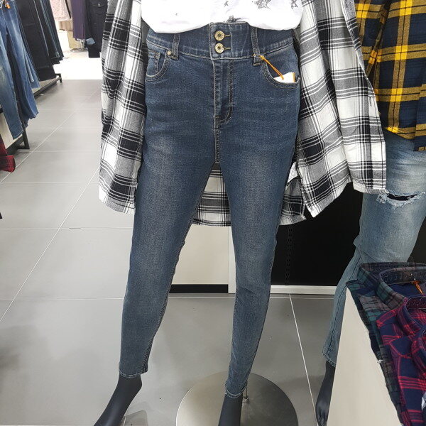 와이드 오비로 뱃살을 잡아주면서 허리 들뜸 현상이 없는 여성용 HW핏 데님 스타일입니다.