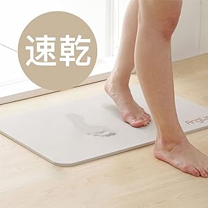 「滑り止め」 珪藻土から作られていますから、バスマットの表面も裏面も滑りにくくなっています。ご家族皆様が安全にお使いいただけます。