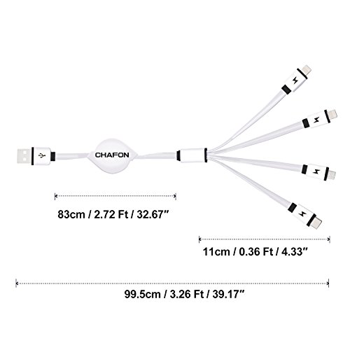 【Only Charging】Retractable 4 in 1 USB Cable,Chafon Multi Universal USB Charger Cable with 1xMicro USB/1xUSB C/2x8 Pin Lightning Connectors Works for iPhone,iPad and Android Smartphone(3.3ft/1m)