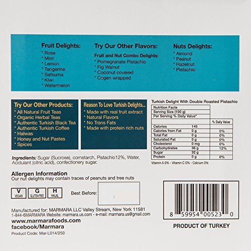 -. Title : Marmara Authentic Mini Turkish Delight with Double Roasted Pistachio / Sweet Confectionery Gourmet Gift Box Candy Dessert