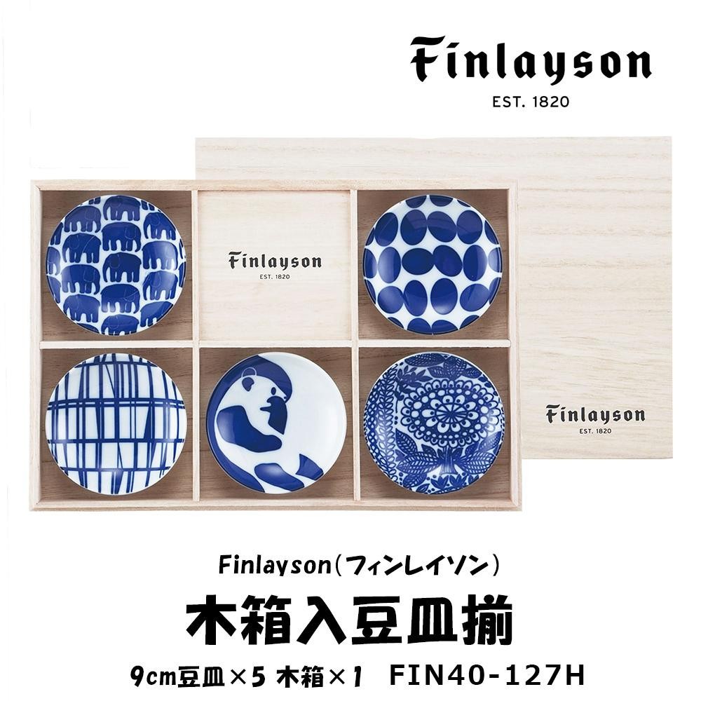 | 美しさと愛らしさを兼ね備えたフィンレイソンの豆皿5点セットです♪5種類の絵柄が楽しめます。高級感のある木箱に入っているので、ギフトにもぴったりです。 |