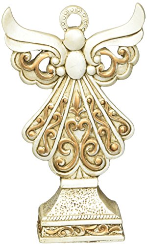 Fashioncraft 8971 Antique Ivory Angel Statue With Matte Gold Filigree Detailing