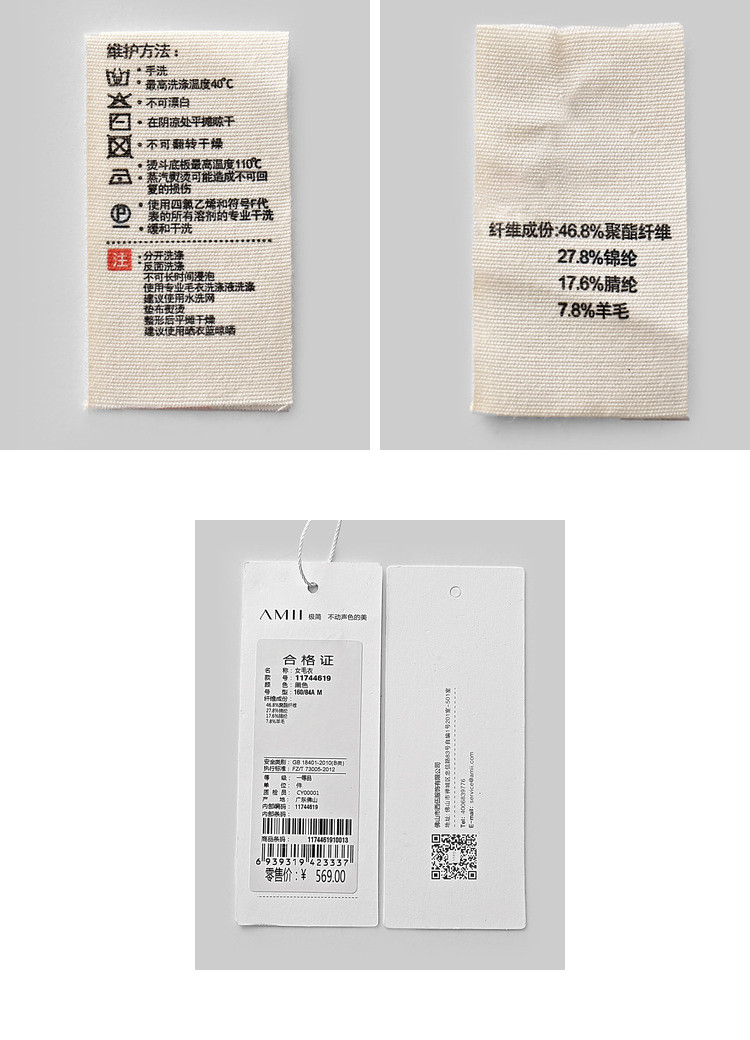 | 面料成分: | 46.8%聚酯纤维 27.8%锦纶 17.6%腈纶 7.8%羊毛 |