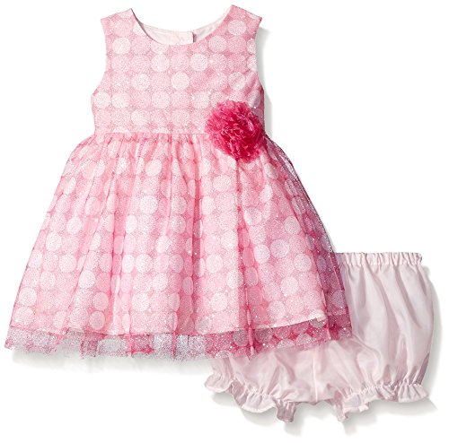 This adorable pink dress is full of sparkle and comes with a removable lace jacket