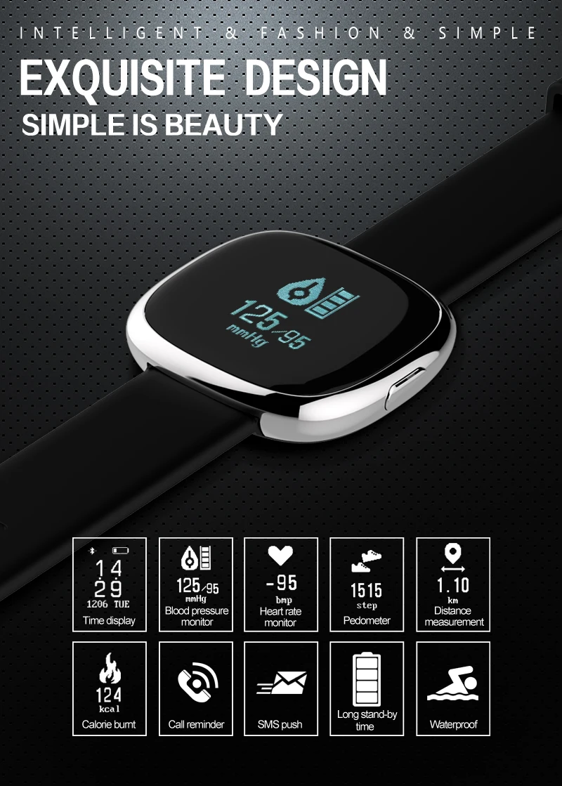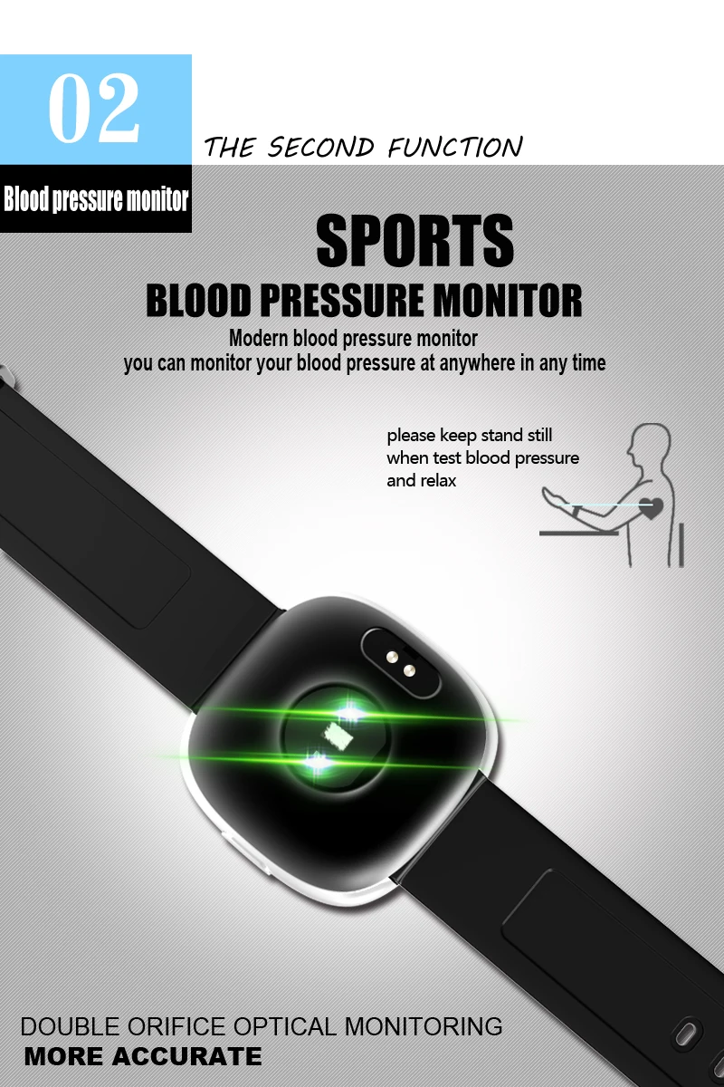 Function:Blood Pressure,Passometer,Sleep Tracker,Calendar,Countdown,Push Message,Blood Oxygen,Heart Rate Tracker,Alarm Clock,Remote Control,Fitness Tracker,Social Media Notifications,Message Reminder,Week,Call Reminder