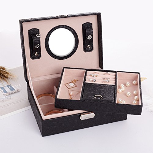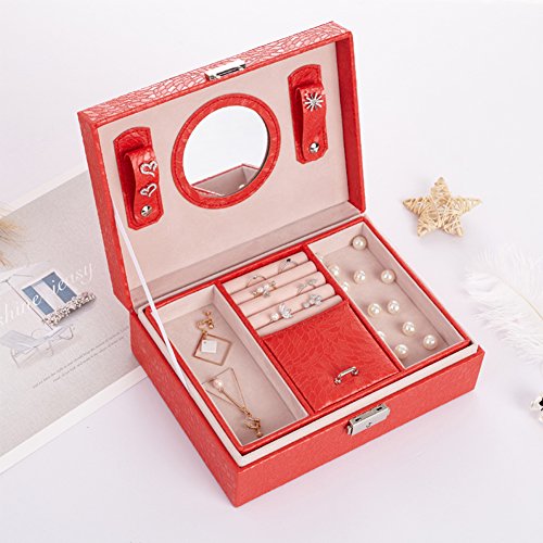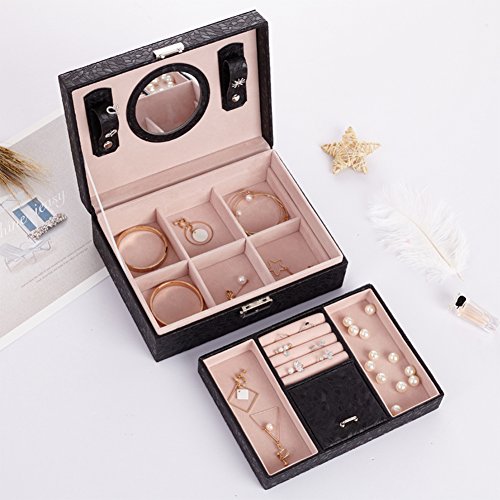 -. Feature : The two-layer jewelry box with removable spacer bars will provide larger capacity to store your jewelries, cosmetics and other small staffs. / Jewelry organizer box with various sizes and shaped compartments can keep all types of necklaces, rings, earring, bracelets, ear studs, irpins, cufflinks, hairpins, brooches organized and look better. / Lockable design, the jewelry storage box will keep your beloved jewelry safe and away from your kids' reach. Mirror in the lid is easy to wear the jewelry and makeup. / Elegant appearance and considerate design, this jewelry box is perfect for personal use, home decoration and it is also an ideal gift to wife, daughter, girlfriend, birthday, Valentine's Day, Mother's Day, Thanksgiving Day, Christmas etc. / We provide 24-Hour Response and 30-Day Money Back Guarrantee.if you have any problems and sestions about our products,pls feel free to contact us.we will provide as much support as we can do