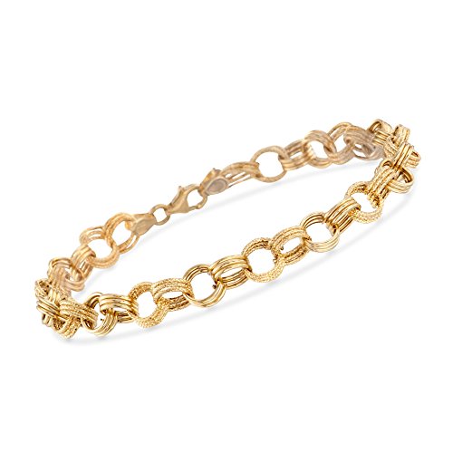 Ross-Simons is the authority on luxury classics. This bracelet presents textured and polished circle-links in alternating groups of three. A beautiful play with glitter and gloss. Made in Italy. Lobster clasp, 14kt yellow gold bracelet. Each Ross-Simons item arrives in a fine jewelry presentation box. Shop Ross-Simons jewelry risk-free as all items include a 30-day, 100% money-back guarantee.Feature