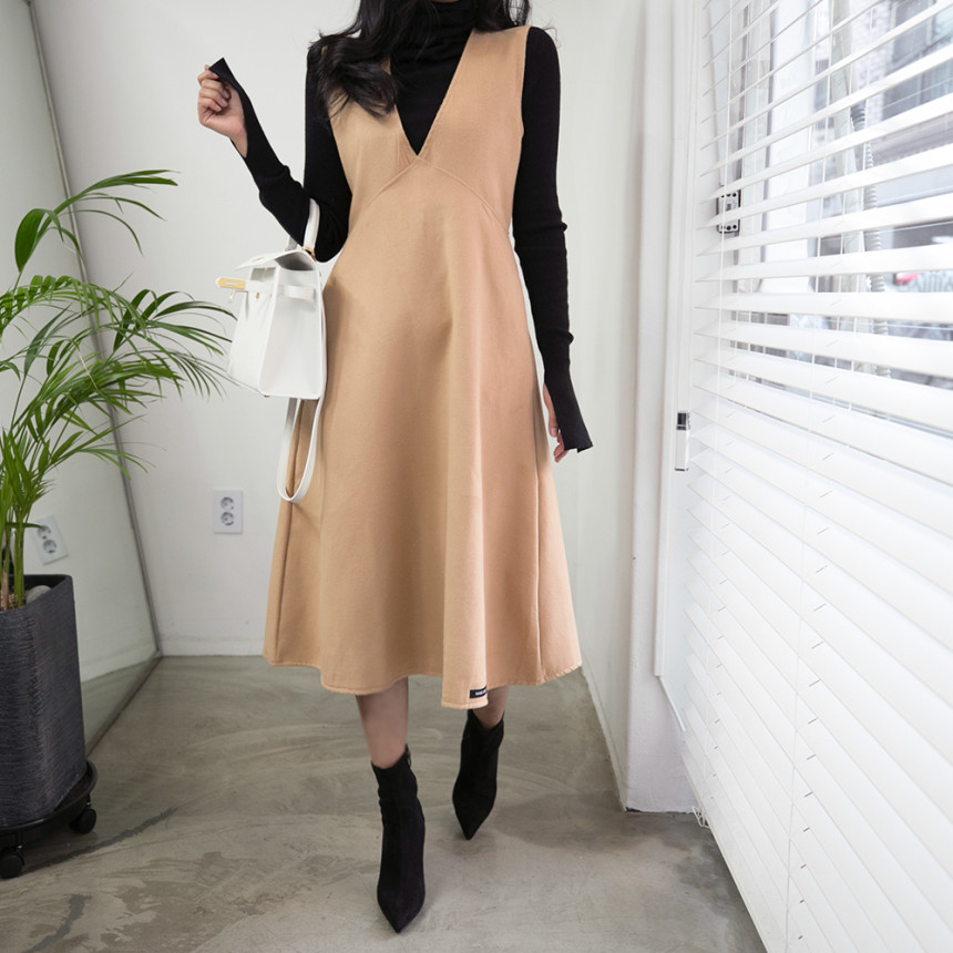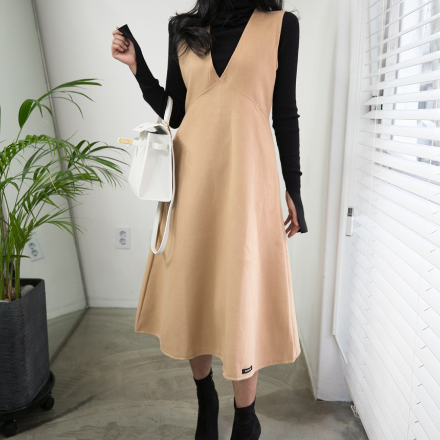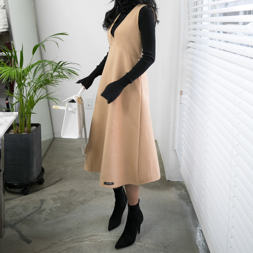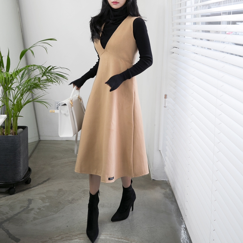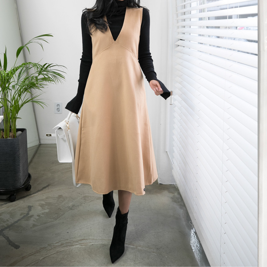 여성스러움과 체형커버를 동시에 톡톡히 느끼게해주는 원피스에요. 깊은 브이네크라인과 다트 디테일이 있어 바스트 밑부분을 살짝 잡아주어 날씬하게 표현해드리며, 롱한 플레어라인으로 촤르륵 떨어지는 치마라인이 정말 예술이에요. 도톰한 소재감에 핸드메이드로 제작되어 간단한 이너웨어와 스타일링해주면 여성스런 실루엣이 연출된답니다. <;기획특가 >; ♥ 천사가격 + 무료배송 ♥