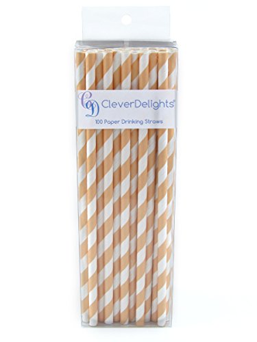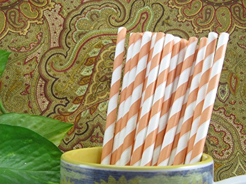 CleverDelights Biodegradable Paper Straws - Peach Stripe - Box of 100
