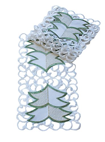 - Intricate Contemporary Christmas Tree Embroidery and Cutwork Trim Surrounds a Crisp White Backdrop