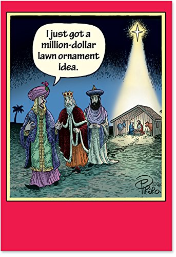 B1173 Box Set of 12 Lawn Ornament Mean Christmas Cards with Envelopes