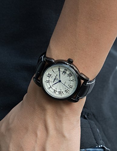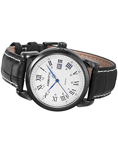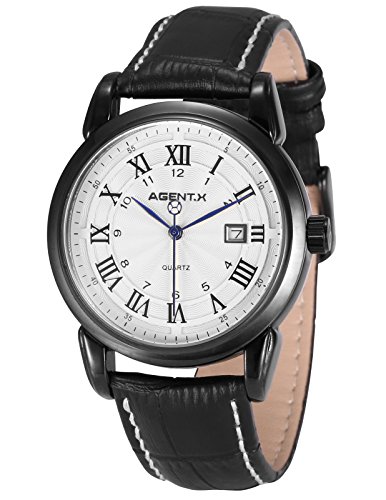 AgentX [에이전트 X]Agent X 맨즈 아날로그 쿼츠 날짜 표시 블랙 레더 밴드 드레스 손목시계AGX135