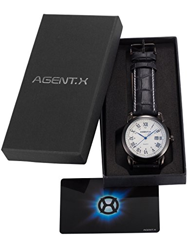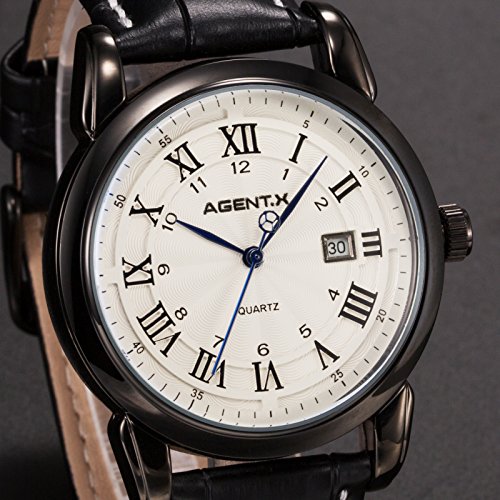 상품명: [에이전트 X]Agent X 맨즈 아날로그 쿼츠 날짜 표시 블랙 레더 밴드 드레스 손목시계AGX135
